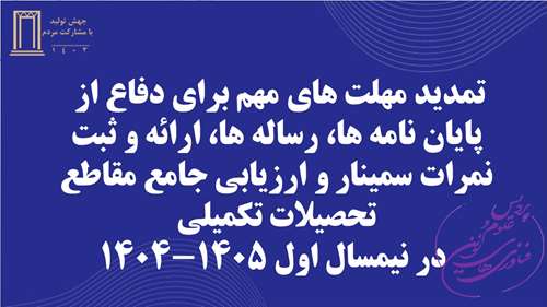 تمدید مهلت های مهم برای دفاع از پایان نامه ها، رساله ها، ارائه و ثبت نمرات سمینار و ارزیابی جامع مقاطع تحصیلات تکمیلی در نیمسال اول 1405-1404